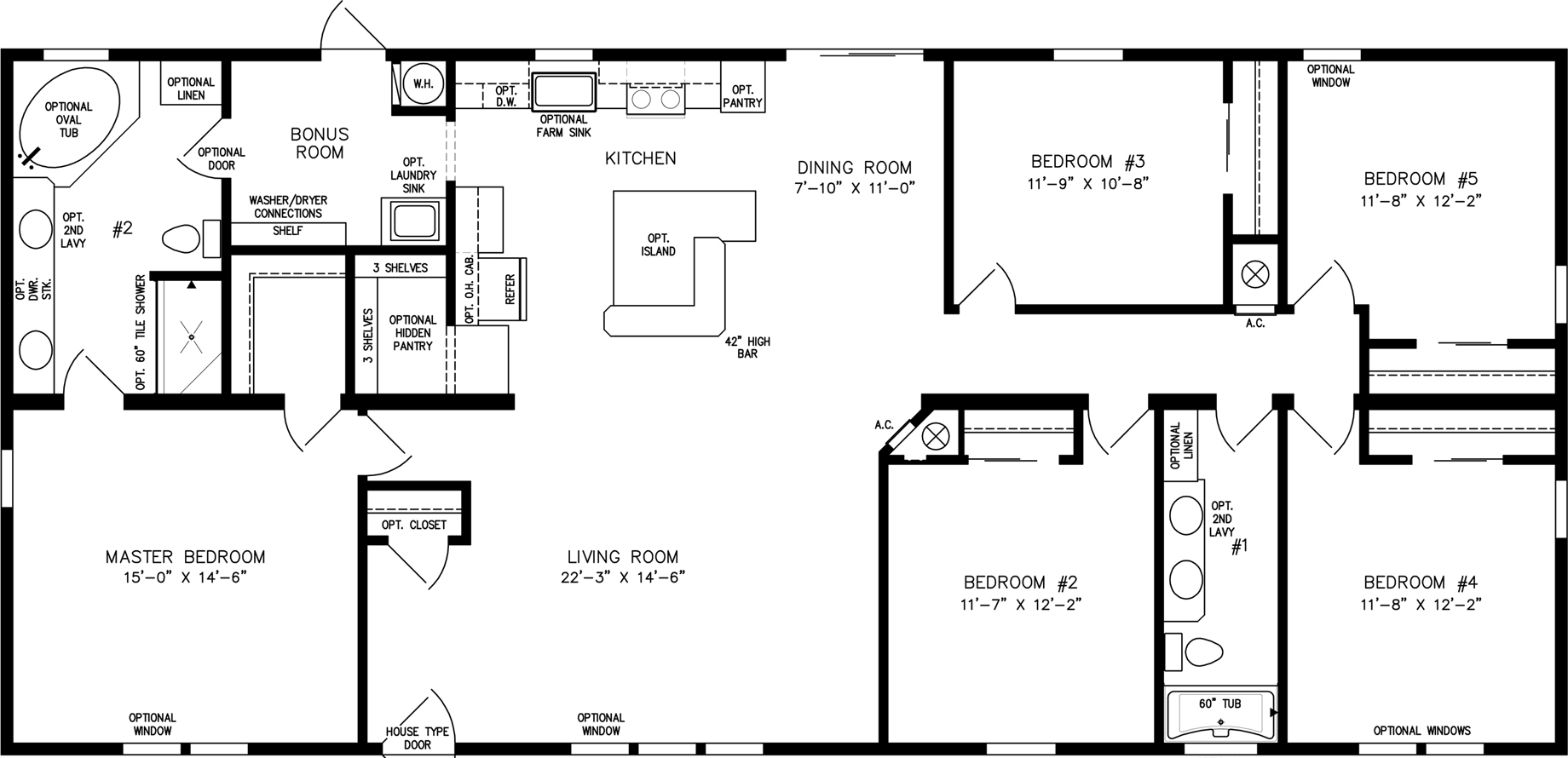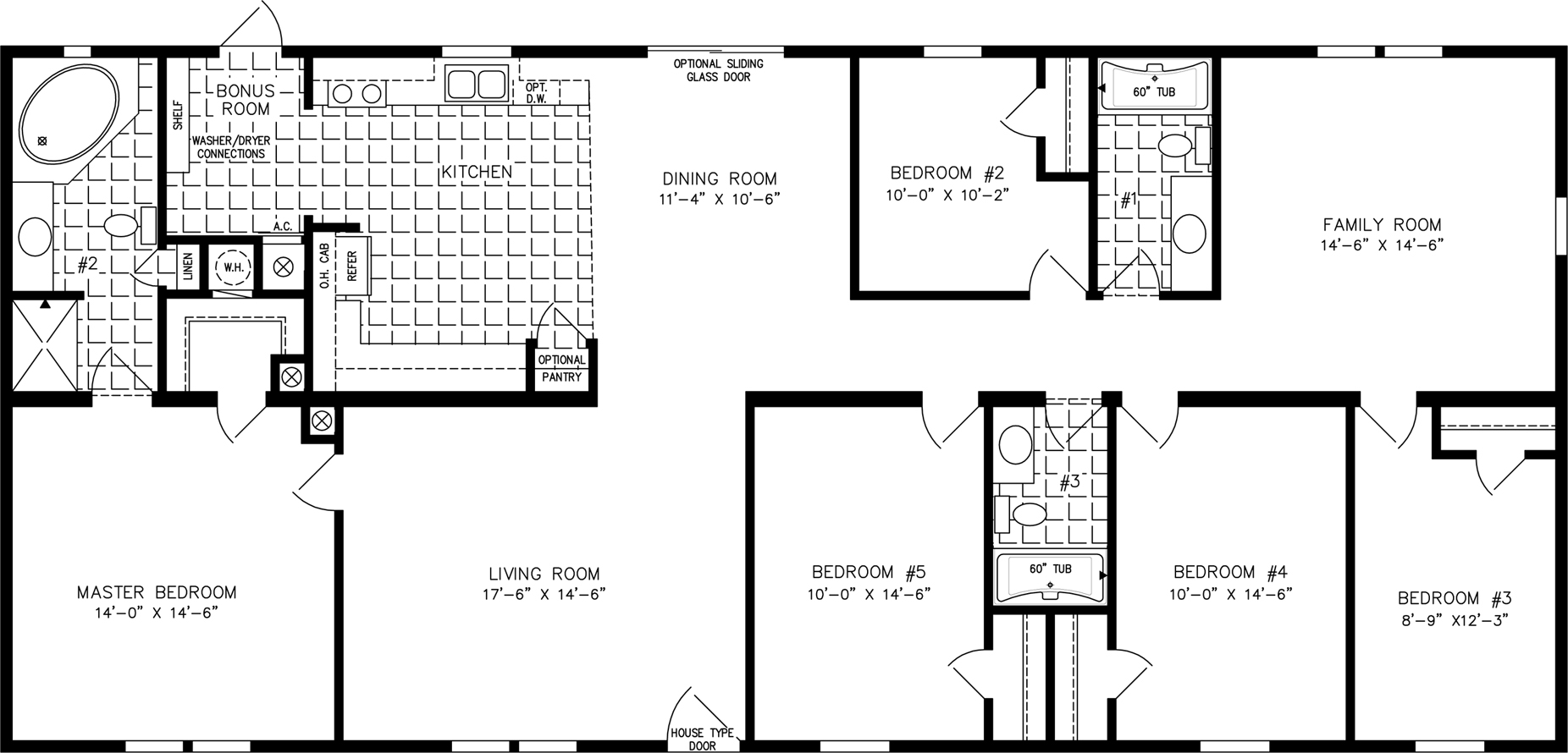 Five Bedroom Manufactured Home Floor Plan | TNR-4686W,