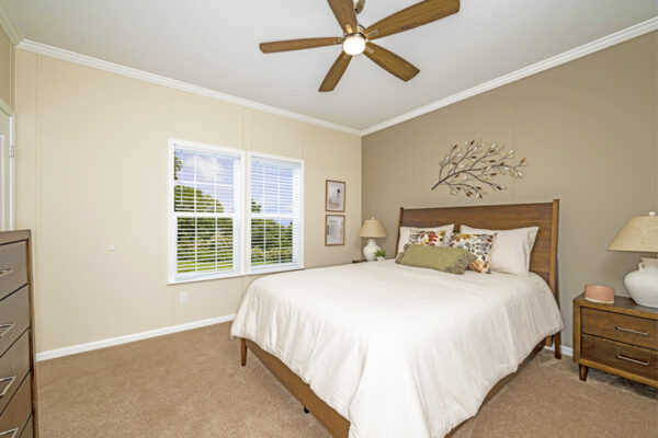 The biggest attraction is the spacious walk-in pantry, along with optional luxury upgrades like chic flooring, built-in book cases, and farm sinks, our Imperial IMP-45213B-39220 double wide modular home can be customized to your lifestyle and unique aesthetics. This floor plan’s executive master bedroom includes an ensuite bath and walk-in closet, ideally positioned for optimal privacy. On the opposite end of the home, two bedrooms and an additional full bath give ample space for any potential guests.