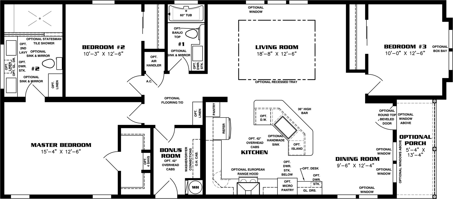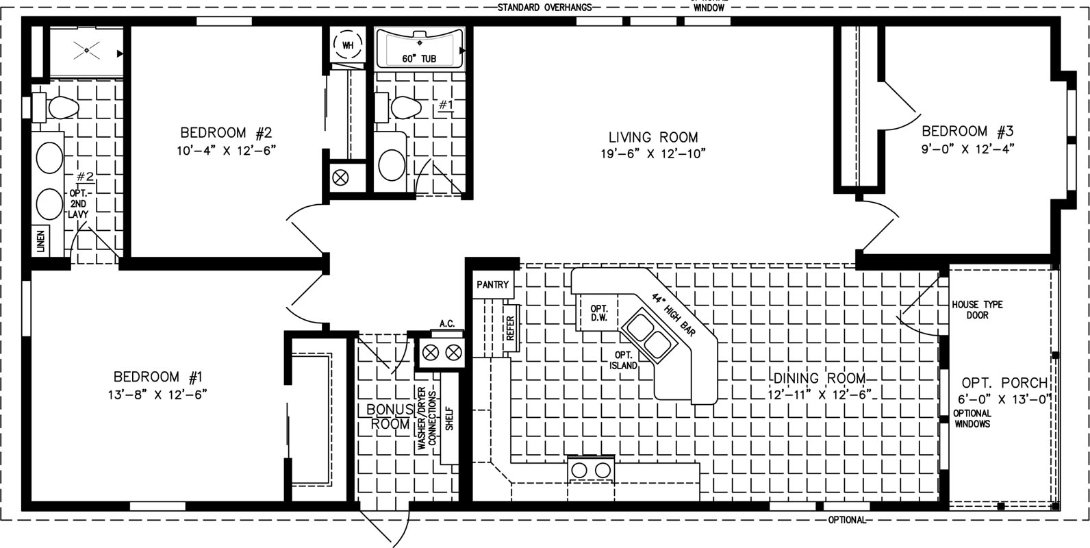 Boasting 1,512 total square feet, the Imperial IMP-6531B-38185 double wide manufactured home is capable of serving a wide range of lifestyle needs. Three spacious bedrooms, including a large 15’ 4” x 12’ 8 master bedroom with an ensuite bath, opens up endless possibilities for owners. From couples and retirees to families and individuals, the spare room in this model can be utilized as a den, office, guest room, kids’ room, craft space, and so much more. Love sitting outside in the mornings grilling in warmer weather? This double wide model also features an optional entry porch.