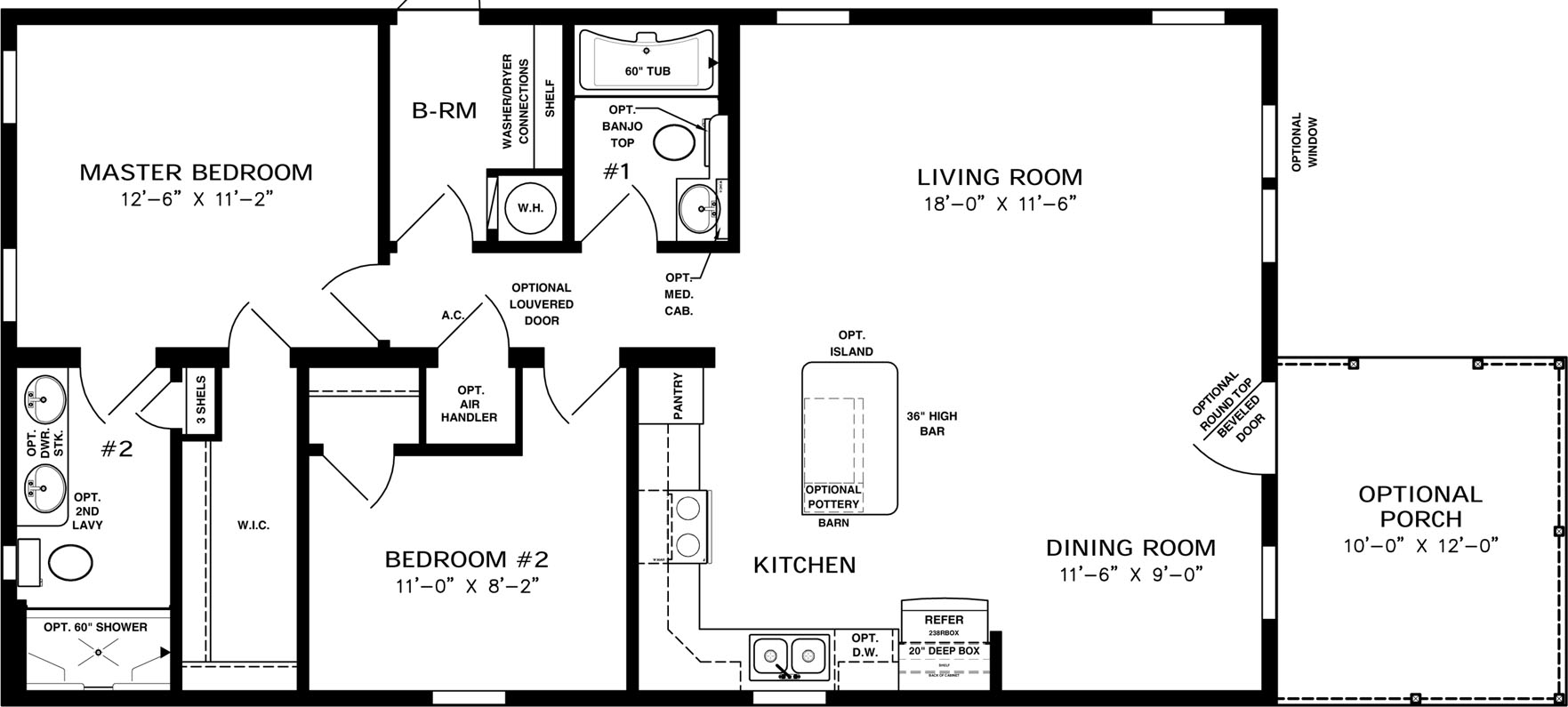 At 1,174 square feet, the Imperial Limited IMLT-3449B boasts two bedrooms, two full bathrooms, and a large open living space capable of easily accommodating guests. The true star of the show, this double wide manufactured home features a spacious 12’ 0” x 15’ 0” master bedroom with an ensuite full bath and two expansive closets. A guest bathroom and the home’s laundry facilities are tucked just across the hall from the secondary bedroom, leaving the rest of the home primed for entertaining.