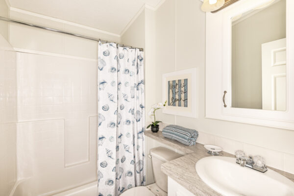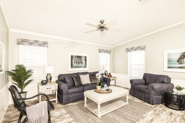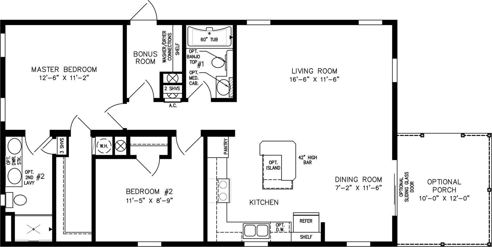 From counter tops and back splashes to cabinet finishes and fireplace options, the Imperial IMP-2421A-35954 double wide manufactured home is a fully customizable dream space. At just over 1,000 square feet, this cozy abode includes a master bedroom with an ensuite bath as well as a secondary bedroom and full guest bathroom. The bonus room is able to be utilized as a laundry area thanks to the washer and dryer hookups, and owners can choose to add an optional porch if they’re hoping to spend ample time enjoying the outdoors.