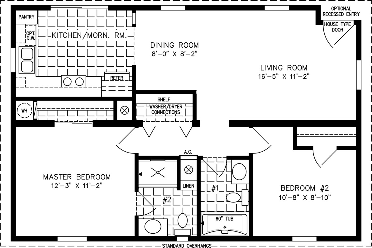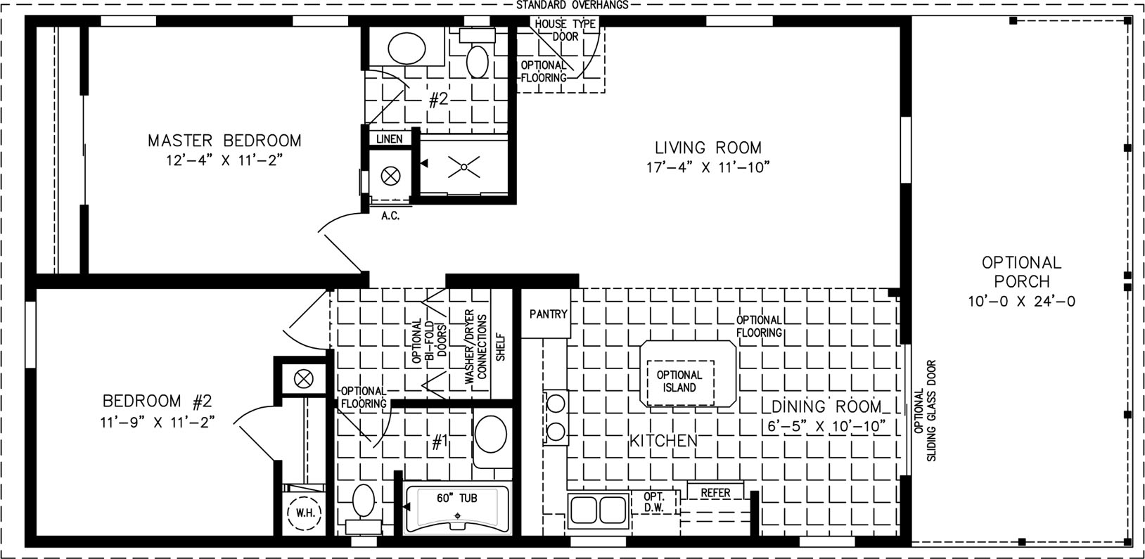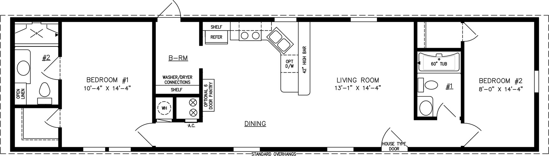Most people choose to add a charming optional porch, our TNR-3364 double wide manufactured home is a lovely fit for owners who crave a little extra time outdoors. Guests can take the short set of stairs to the large porch and use the beautiful sliding glass doors to enter the living room. This home’s two bedrooms – including a master with ensuite bath – are tucked together on one end of the home, creating a useful distinction between living and entertaining areas.