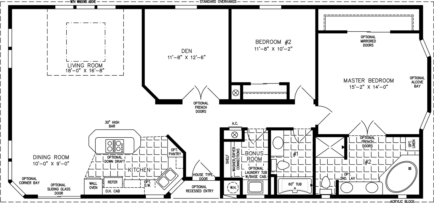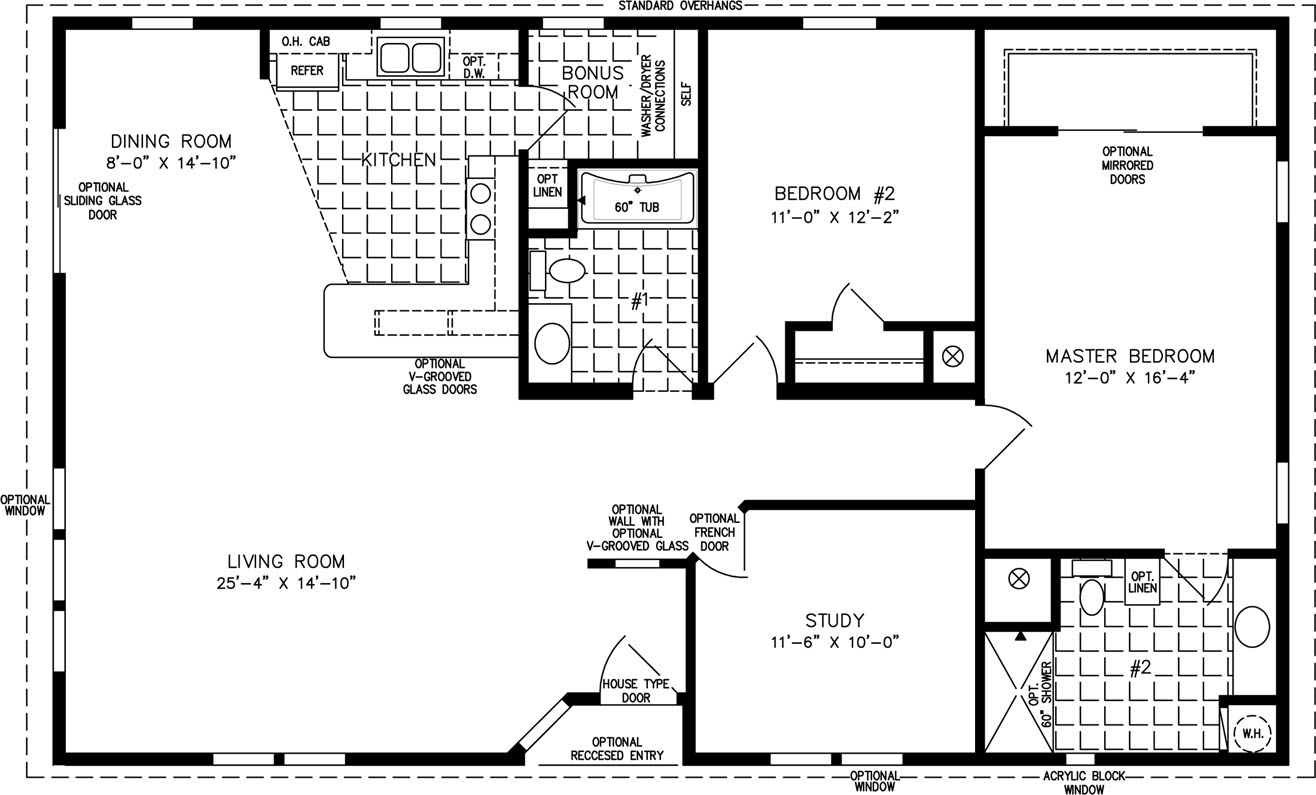The true star of the show in this spacious double wide modular home is its large living room, perfect for entertainment. Clocking in at 25’ 4” x 14’ 10” and connected to the rhome’s dining room via an open concept floor plan, the living room of the TNR-5501W model is ideal for hosting large gatherings or for families who love spending time in a central common room. This model also features a large master bedroom and ensuite bath, charming guest room, and a small study that can be used as anything from a children’s play room to a home office or crafting space.